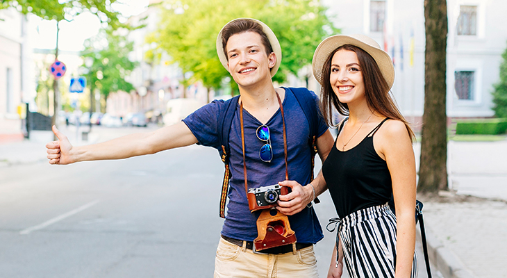 Ordering a taxi with a smart phone.